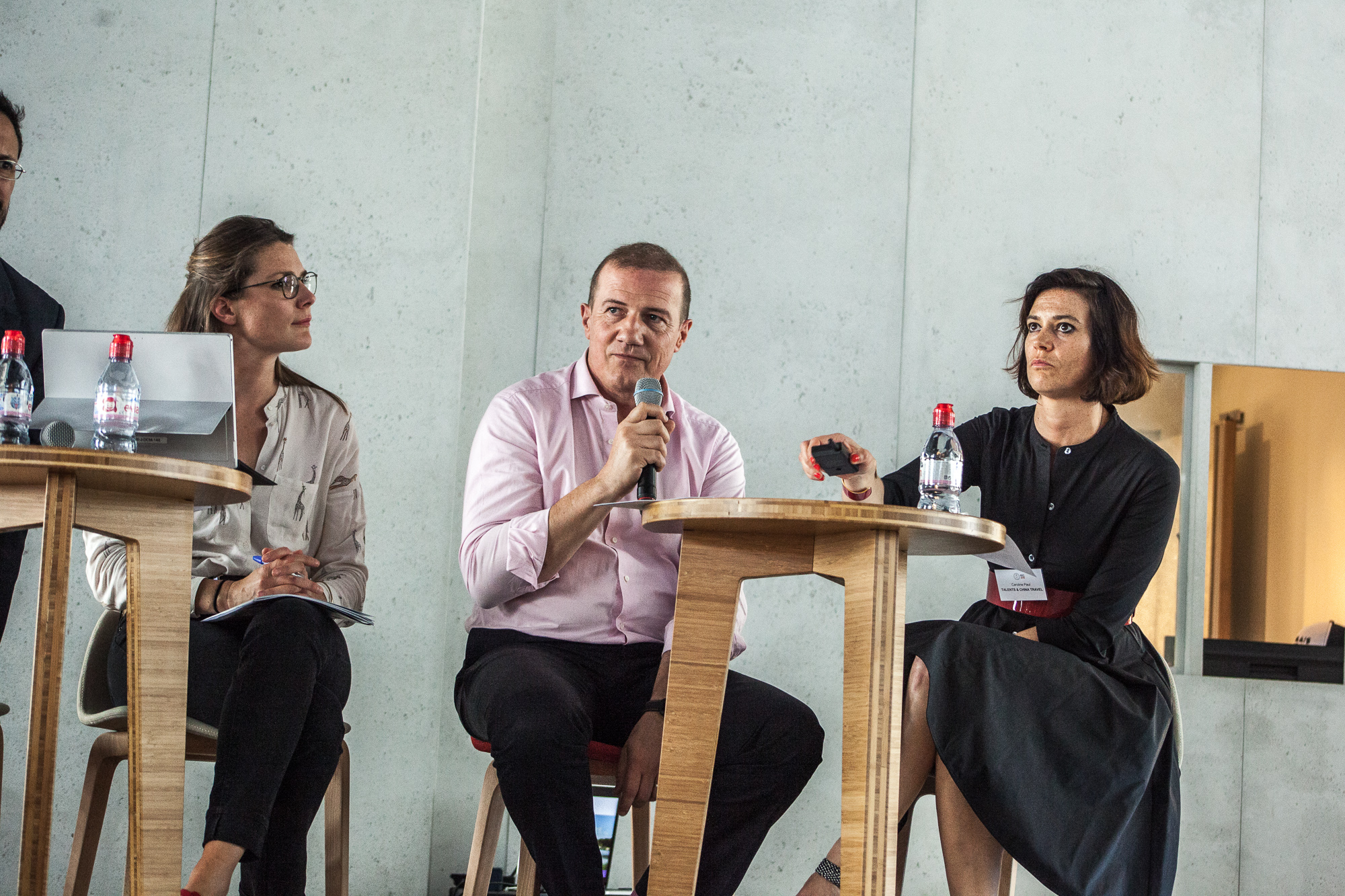 Cécilie de Saint-Venant (Domaine National de Chambord, à gauche), Thierry Hellin (Pierre & Vacances-Center Parcs) et Caroline Paul (Talents & China Travel) – Next Tourisme 2018 Crédit photo : Guillermo Gomez